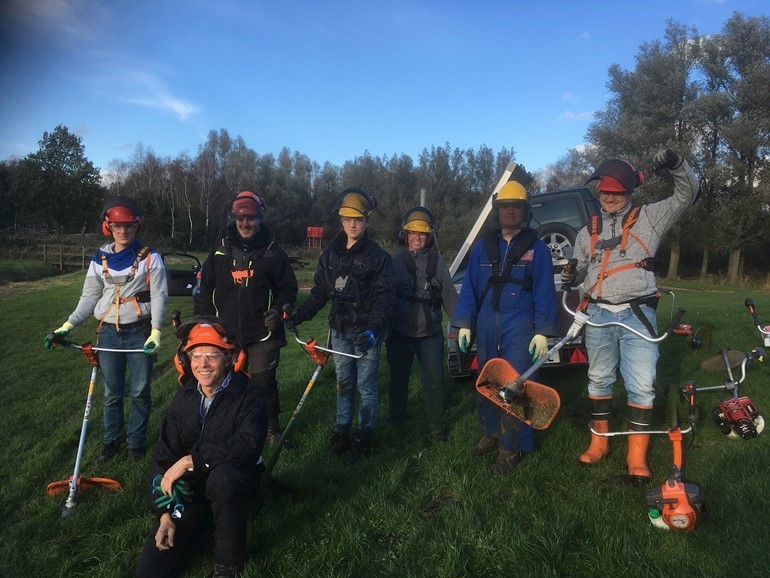 's Middags gingen ze op de avonturenspeelplaats aan het werk om de praktijk te leren. Alle zes de deelnemers zijn geslaagd en ontvingen hun bosmaaien certificaat én een officieel bosmaaien pasje. Hiermee kunnen ze tonen dat ze verantwoord en veilig aan het werk kunnen met de bosmaaier op de boerderijen van Landzijde, maar ook daarbuiten.