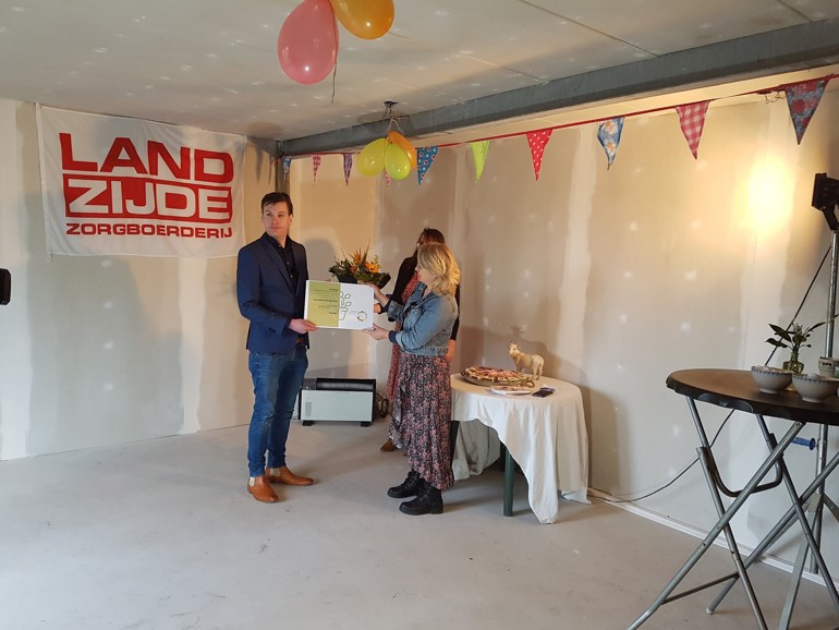 Zorgboerin Wendy Borst, van geitenboerderij ’t Roode Hart, mocht onlangs €20.000,- in ontvangst nemen van Eleven Floawers Fonds voor de opstart van een inloopplek voor vrouwen met borstkanker (en hun gezinnen).