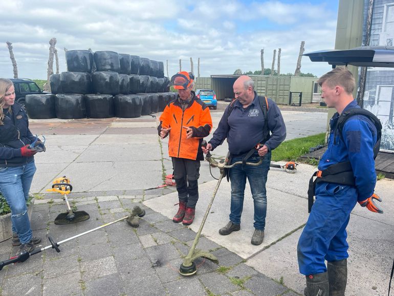Onzorgvuldig gebruik van bosmaaiers kan (ernstig) letsel veroorzaken. Denk hierbij aan opspattende stenen, een verkeerde gebruikshouding van de maaier of oogletsel als gevolg van onzorgvuldig gebruik van persoonlijke beschermingsmiddelen. Leraar Piet wist hier heel veel over te vertellen en heeft alles goed uitgelegd. Aansluitend was er nog een praktijk gedeelte om al het geleerde te oefenen.