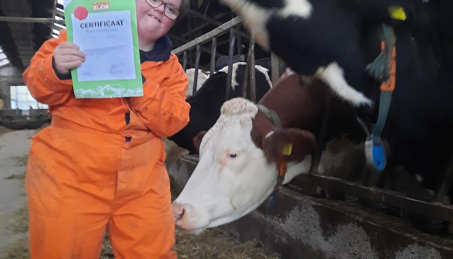 Maartje Jansen runt 4 dagen in de week samen met Harm en Wendy zorgboerderij de Meent. Ze begeleiden met name jongvolwassenen met een verstandelijke beperking of psychische problemen. Daarnaast hebben ze een melkvee bedrijf en een kinderboerderij. De deelnemers hebben dus van alles te doen. Dit is nog niet alles, want Maartje ontwikkelt speciaal educatief maatwerk voor de deelnemers met een verstandelijke beperking.