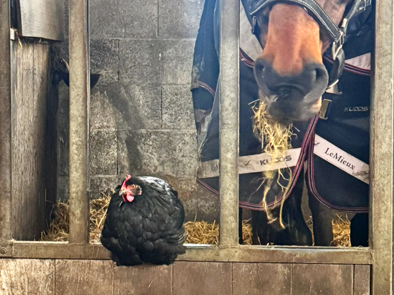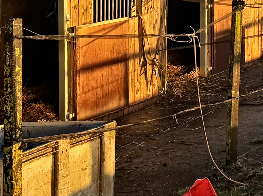 We mesten wat stallen en zorgen dat de paarden een lekker bedje hebben en weer eten voor de rest van de dag. Het erf is weer netjes als er geveegd is.